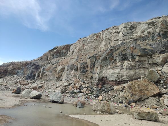 因G526(江南至北部)快速通道建設(shè)需回填方量約1000萬(wàn)立方米(折約2500萬(wàn)噸),為此設(shè)立岱山縣岱西鎮(zhèn)雙合社區(qū)牛山建筑用石料(凝灰?guī)r)礦采礦權(quán)。岱山縣筑地土地開(kāi)發(fā)有限公司取得采礦權(quán),于2018年3月30日取得了浙江省自然資源廳頒發(fā)的采礦許可證(證號(hào):C3309212018037120146019),開(kāi)采礦種:建筑用石料(凝灰?guī)r),有效期至2023年9月30日,開(kāi)采規(guī)模:260萬(wàn)立方米/年,為工程礦山。礦山于2019年6月通過(guò)安全設(shè)施竣工驗(yàn)收,投入正式開(kāi)采。目前因G526(江南至北部)快速通道已無(wú)石料需求,剩余石料運(yùn)往青黑臨時(shí)堆場(chǎng)堆置。 |