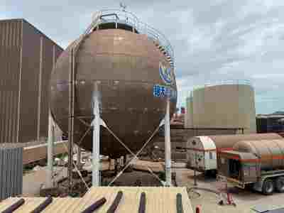 舟山市輝昊物資有限公司(以下簡稱舟山輝昊)建設的二氧化碳儲罐項目由定海區發改委核準并批復,由浙江天路工程設計有限公司進行安全設施設計,已完成并通過“三同時”竣工驗收及消防備案,現出租給舟山錦禾氣體有限公司(原舟山昌禾氣體貿易有限公司)進行相關經營活動(租賃協議見附件),租賃面積約2000m2